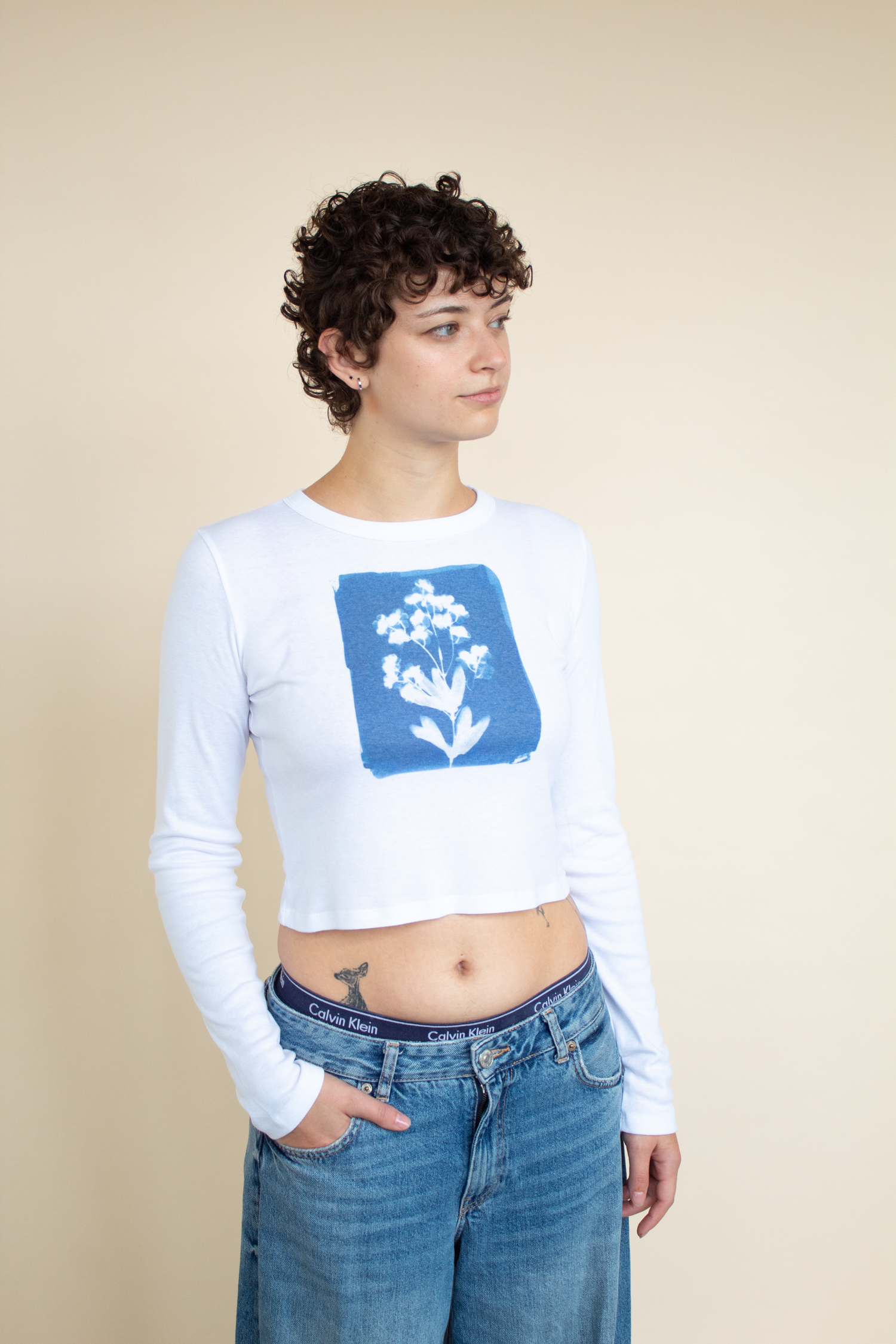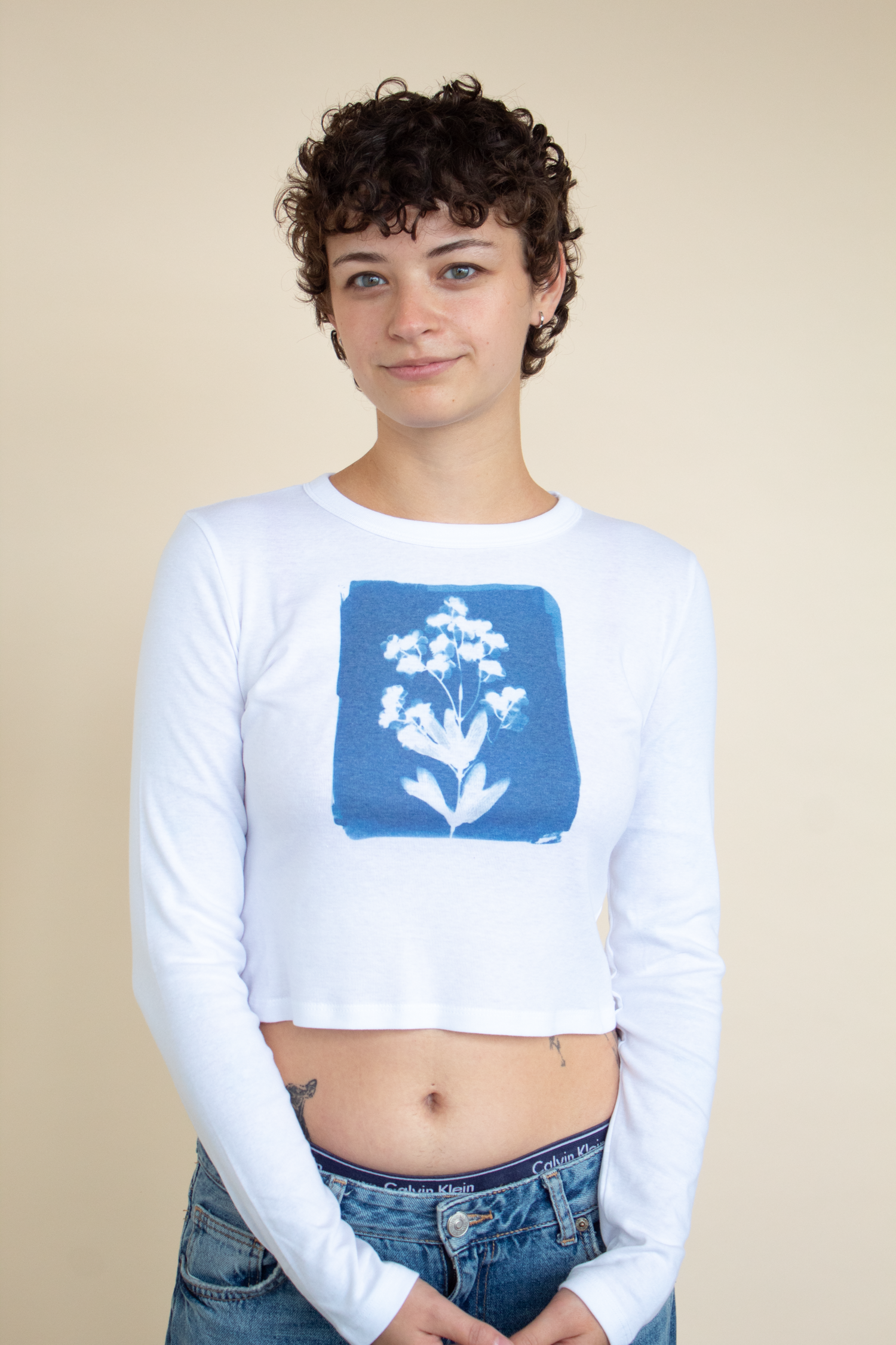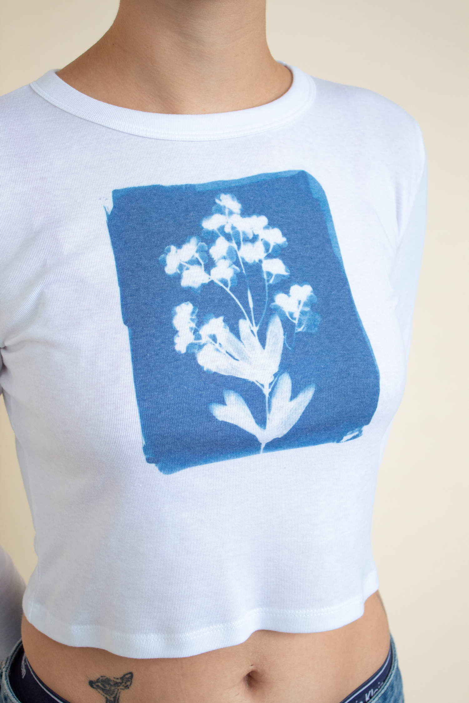 The perfect soft baby tee of your dreams! Original cyanotype design created at our Chicago Studio using flowers + the power of the sun 🌀 printed on a fitted mid length long sleeve tees