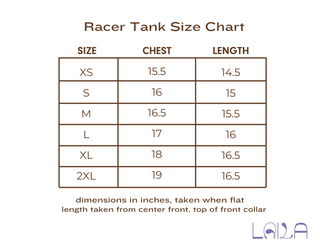 - Racer Tanks are the same length than our best selling Baby Tees, chest dimensions are also the same